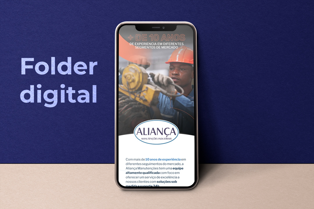 Layout de folder institucional da empresa Aliança Manutenções Industriais.