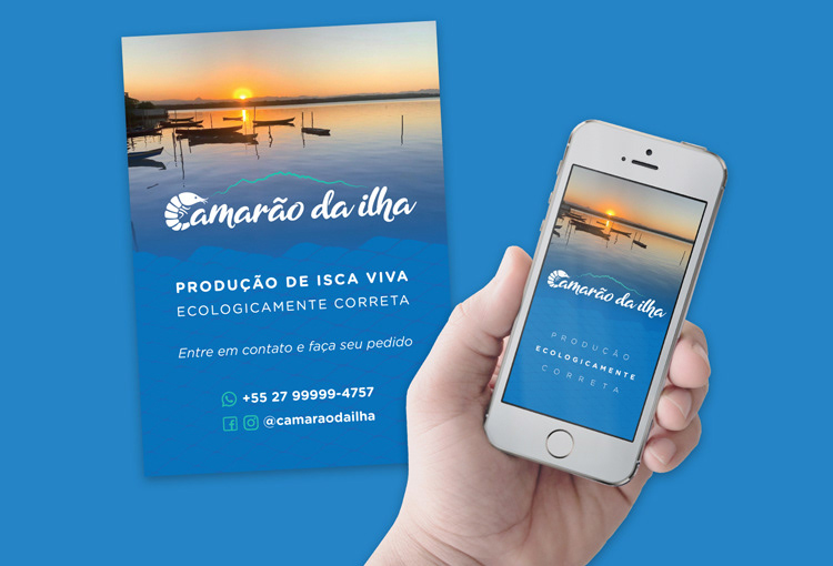 Criação de logotipo, identidade visual e peças de comunicação para a empresa Camarão da Ilha.