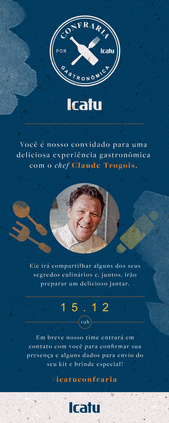 Criação de logotipo, identidade visual e peças de comunicação para o evento online Confraria Gastronômica - Icatu.