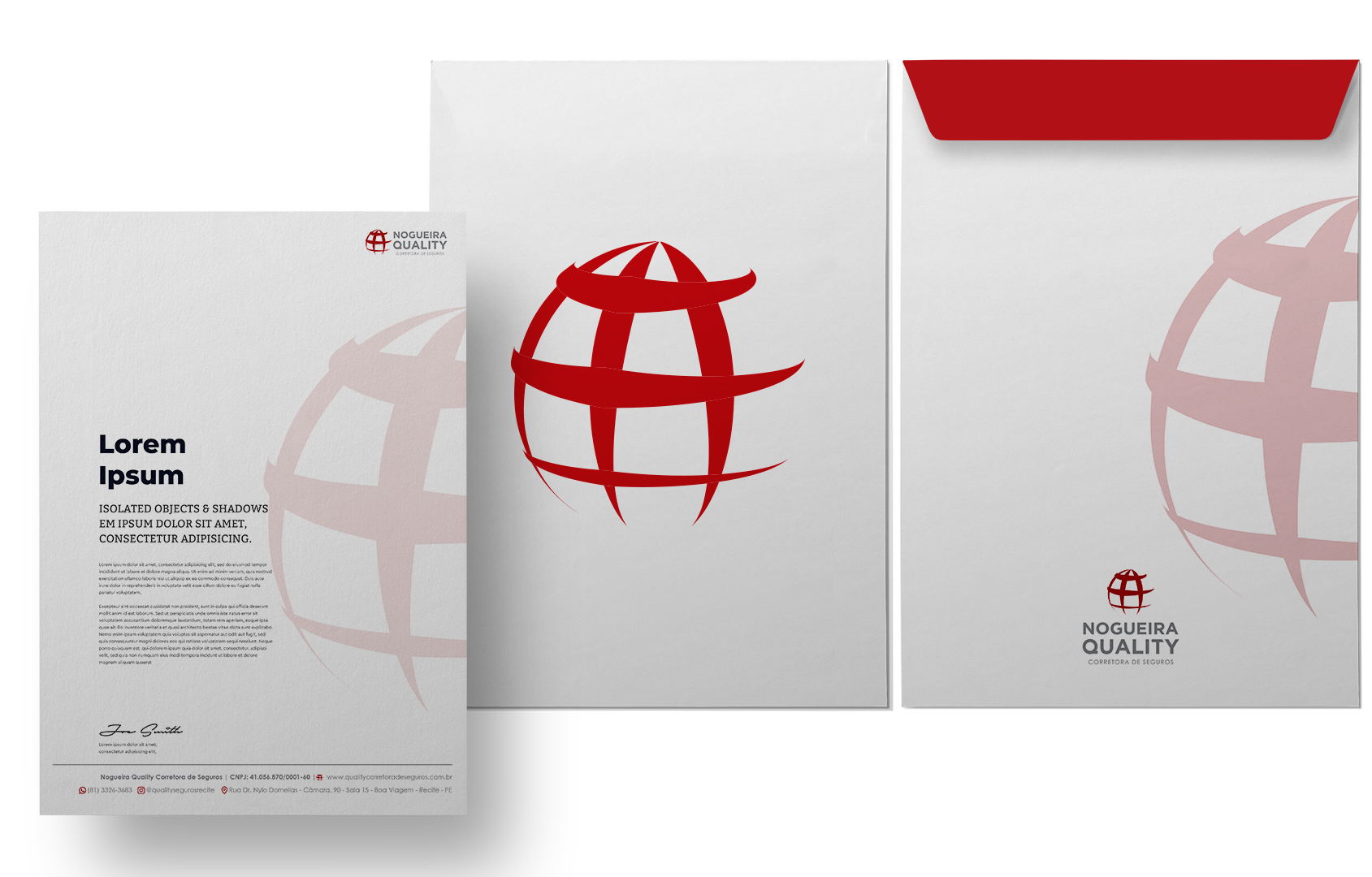 Atualização do logotipo, criação de identidade visual e peças de comunicação para a Nogueira Quality - Corretora de Seguros.