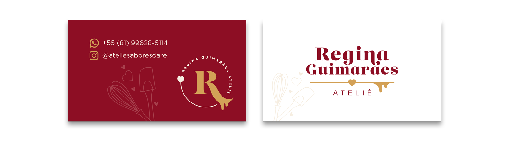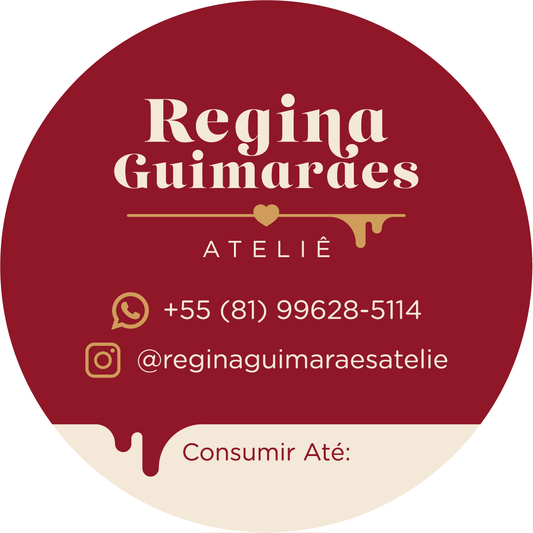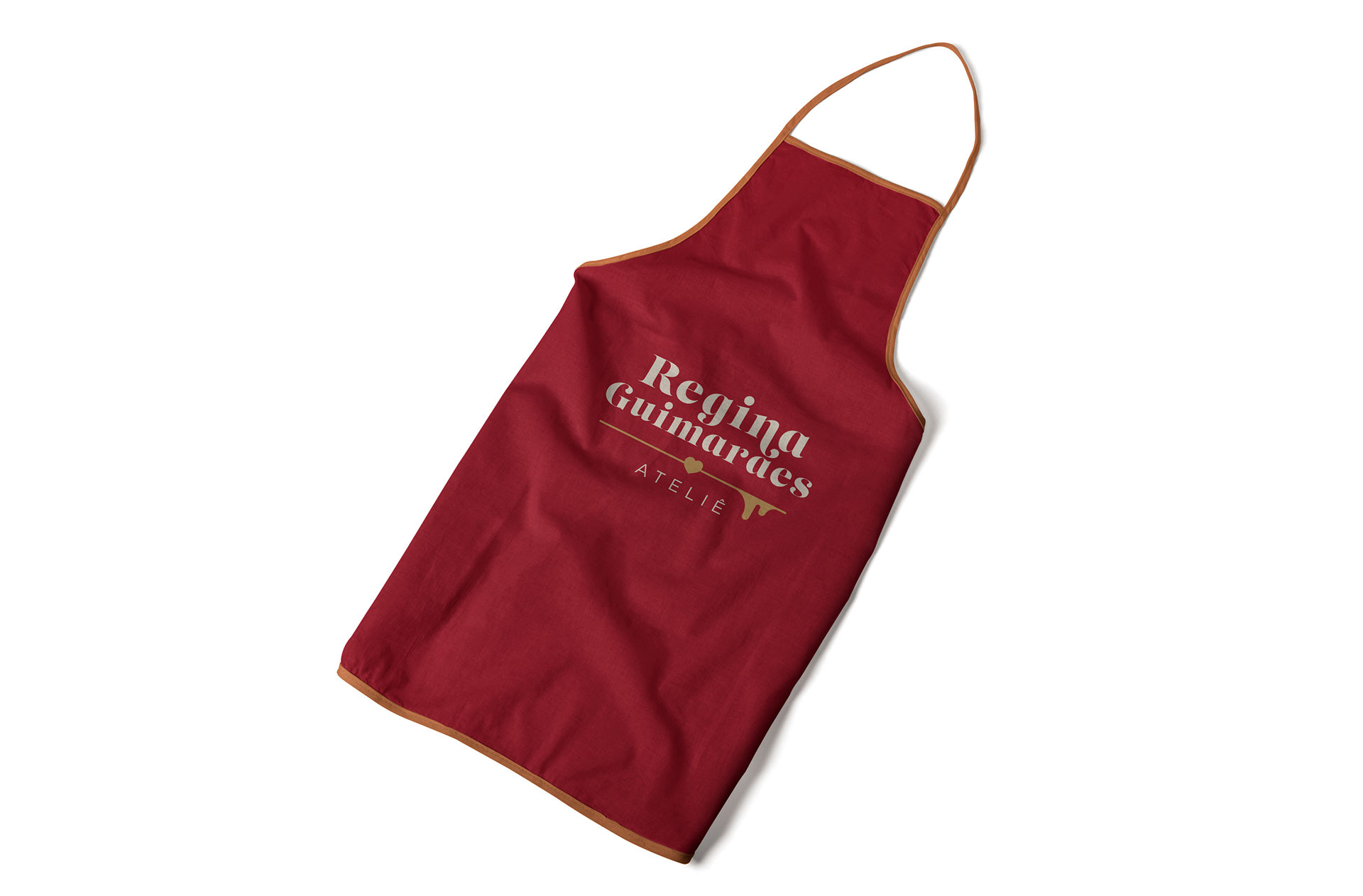 Criação de logotipo, identidade visual e peças de comunicação para a Regina Guimarães, ateliê de doces, bolos e biscoitos.
