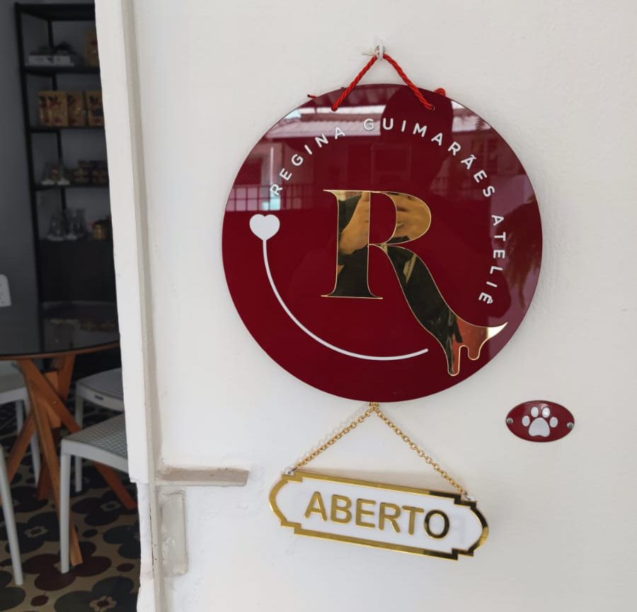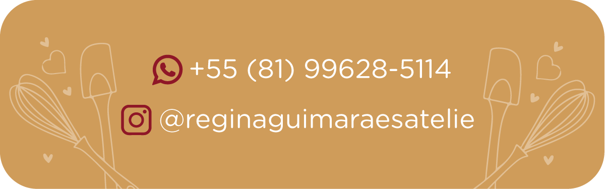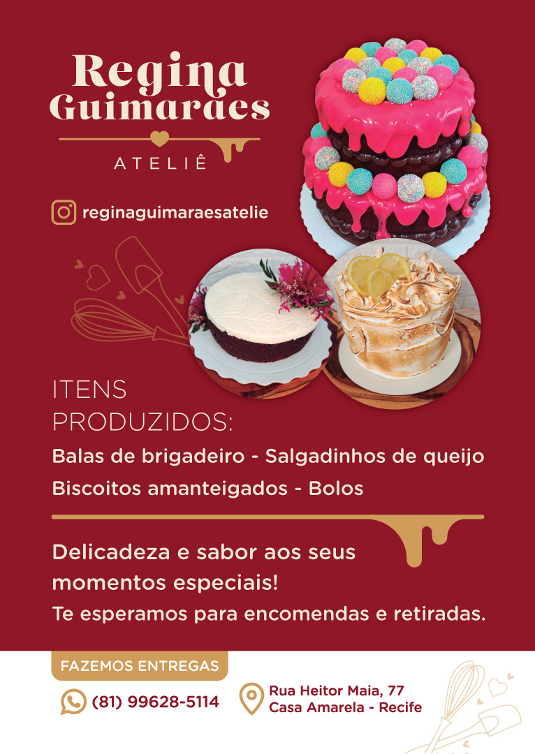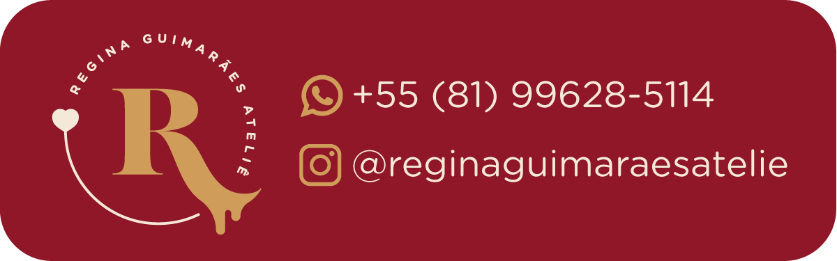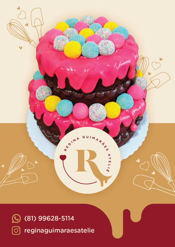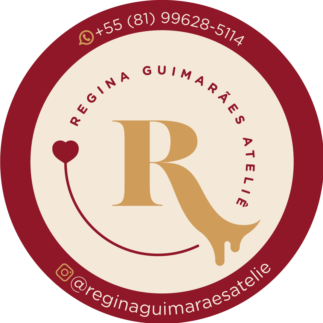 Criação de logotipo, identidade visual e peças de comunicação para a Regina Guimarães, ateliê de doces, bolos e biscoitos.